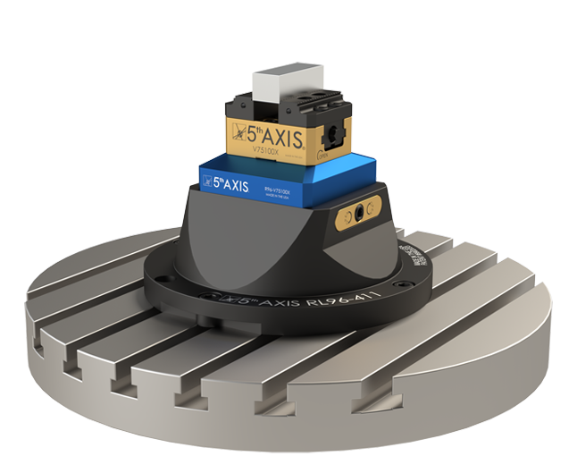 アメリカ 5thAXIS社 小型~大型バイスの幅広いラインナップがあり、干渉が少なく、高クランプ力が特徴です。特許取得済みの"RockLockクイックチェンジシステム"により素早い段取り替えを実現します。