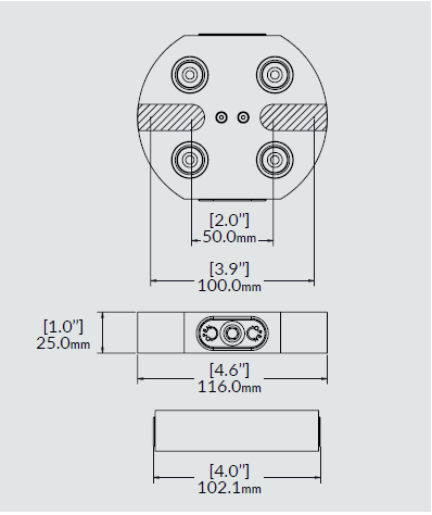 HWR社の補正機能付き4つ爪チャック/バイスでは、円形、角材、不定型ワークを補正して同心円状にクランプすることができます。4つ爪バイスは96mmピッチ クイックチェンジシステム適合。
